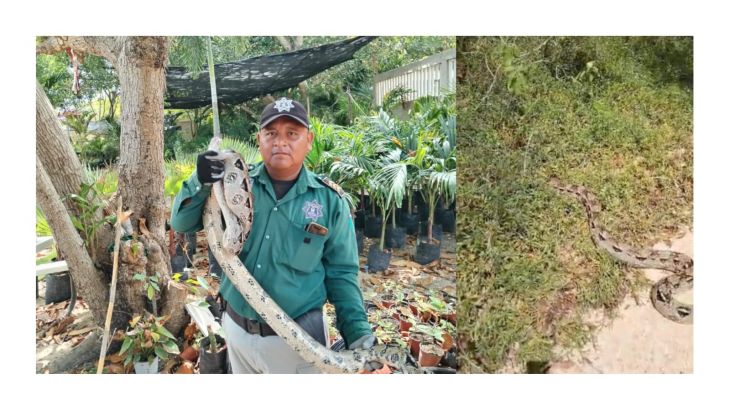 Una enorme boa de casi 3 metros de largo pudo ser resguardada y liberada en un lugar seguro tras el reporte de una mujer a la Policía Ecológica de Progreso.