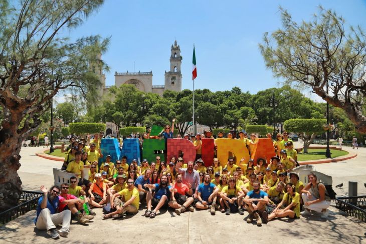 Un grupo de 150 jóvenes usando playeras amarillas recorre la península de Yucatán desde hace más de 15 días y actualmente se encuentra en Mérida en busca de experiencias transformadoras como parte de la novena edición de la Ruta Inti, un programa académico que reúne a mujeres y hombres de 18 a 25 años de distintos países del mundo.