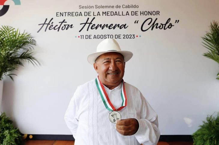 Elmer Octavio de Guadalupe Ayil Ortega "Octavio Ayil" recibió la medalla de honor Héctor Herrera “Cholo” 2023, que otorga el ayuntamiento de Mérida, en reconocimiento a su destacada labor y trayectoria artística de más de 50 años como actor, cantante, bailarín y coreógrafo del teatro regional yucateco.