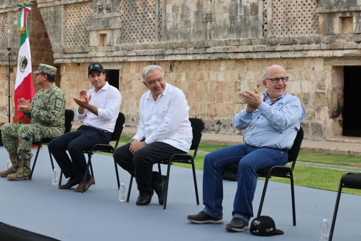 El Gobierno de Yucatán y la Federación refrendaron su compromiso para continuar con la transformación de la entidad a través de diversos proyectos como el Tren Maya, obra que contribuirá a atraer mayor número de turistas y con ello se beneficiará a las familias yucatecas. La reunión entre el gobernador del estado, Mauricio Vila Dosal, y el presidente de México, Andrés Manuel López Obrador, tuvo lugar en la zona arqueológica de Uxmal, en donde ambos celebraron una reunión de trabajo y en la que fueron acompañados de expertos en la materia de vestigios históricos.