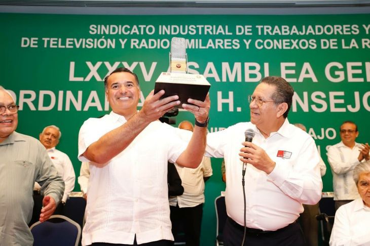 Renán Barrera Concha, alcalde de Mérida, informó que se trabaja para garantizar la libre expresión e información en todo Yucatán, durante la inauguración de la LXXXV Asamblea General del Consejo Nacional del Sindicato Industrial de Artistas y Trabajadores de Televisión y Radio Similares y Conexos de la República Mexicana (SITATYR).