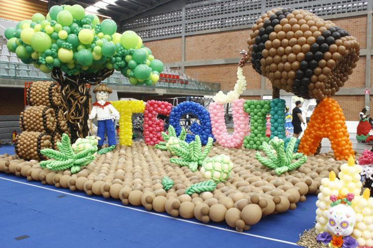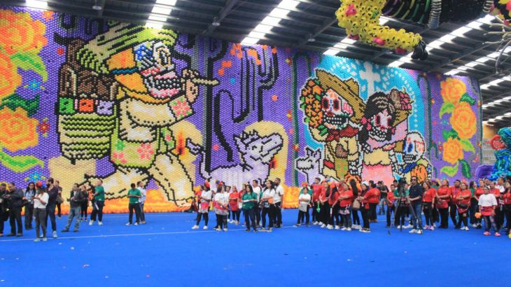 Fábricas Selectas fue la encargada de convocar a personas de todo el país a la Sala de Armas de la alcaldía Iztacalco, en la Ciudad de México, para formar gigantescas figuras con globos, los cuales están hechos a base de látex natural.