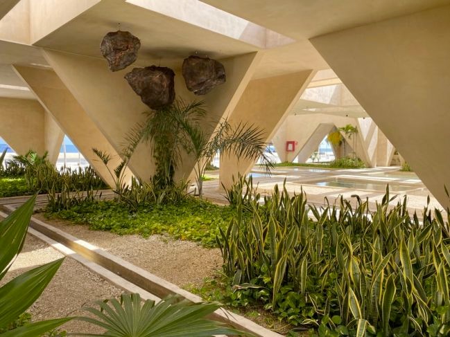 El Museo del Meteorito fue diseñado por Estudio MMX; está conformado por 45 prismas rectangulares de base cuadrada y su estructura es una especie de conector entre la ciudad, el malecón y el mar; se construyó con una inversión de más de 70 millones de pesos (mdp) y es parte de las intervenciones urbanas en los municipios aledaños al proyecto del Tren Maya, informó la Sedatu en un comunicado.
