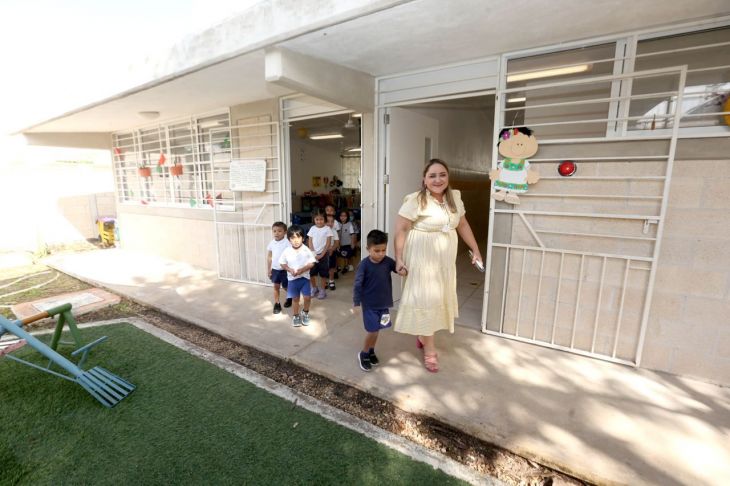 Niñas y niños del fraccionamiento Villa Jardín en Ciudad Caucel ya cuentan con espacios, adecuados, cómodos y cercanos para su educación, tras inaugurarse la escuela de nivel prescolar que lleva el nombre de la maestra Effy Luz Vázquez López, quien estuvo presente en el acontecimiento escolar.