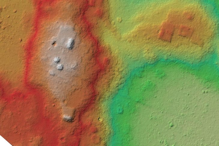 Esta herramienta de teledetección utiliza rayos láser para medir la distancia de una superficie; el resultado es una nube de puntos que permite generar mapas topográficos y modelos 3D detallados, definiendo rasgos que, para este caso, se hallan bajo la selva mediana y campos de cultivo.