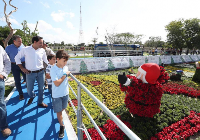 Autoridades estatales inauguraron el Paseo Navideño de las Flores, atractivo que a partir del 9 de diciembre y hasta el 6 de enero estará en la explanada cívica del Parque de “La Plancha”, para el disfrute y la sana convivencia de yucatecos y visitantes, como una opción para visitar durante las fiestas decembrinas.