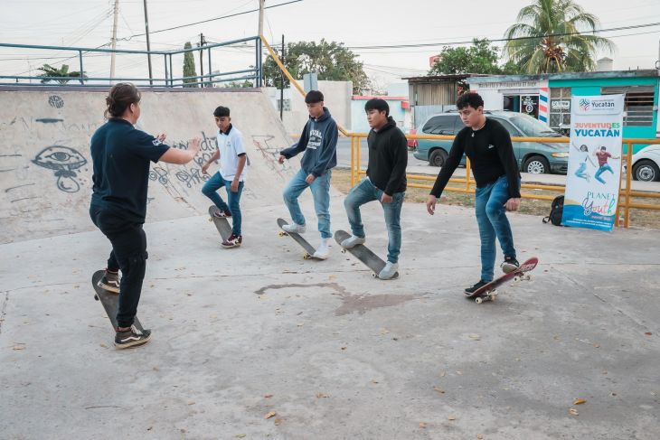 Juventudes Yucatán es una de las estrategias del Cepredey para prevenir el delito enfocada en las personas más jóvenes. Las clases de skate surgen después de una encuesta para conocer los intereses de este sector poblacional en actividades y deportes.