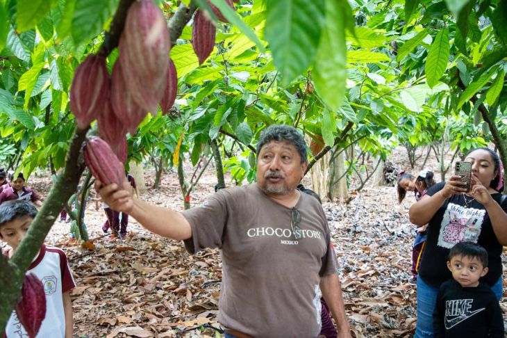 En el recorrido guiado por el gerente de la plantación, Mario Concepción Burgos, las y los estudiantes se adentraron a una jornada de aprendizaje y diversión, en la cual conocieron la importancia del cacao como alimento ancestral, el cuidado de la planta y la experimentación de olores y sabores, todo esto de la mano del maestro Sergio Meza, un docente que inspiración y transforma la educación para formar a nuevas generaciones de guardianes del patrimonio de Oxkutzcab.