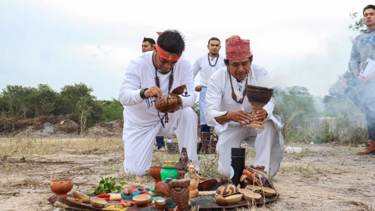 Con una ceremonia maya para mantener el equilibrio con la naturaleza y sus fuerzas es como comenzó la construcción de la primera cancha de Juego de Pelota Maya Pok Ta Pok en el municipio de Progreso.