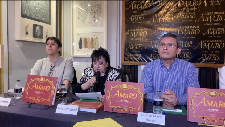 Olga estuvo acompañada por tres hombres en la mesa principal, pero en Amaro estuvieron presentes varias personas que a lo largo del tiempo se han convertido en familia y que escucharon y celebraron la presentación del libro.