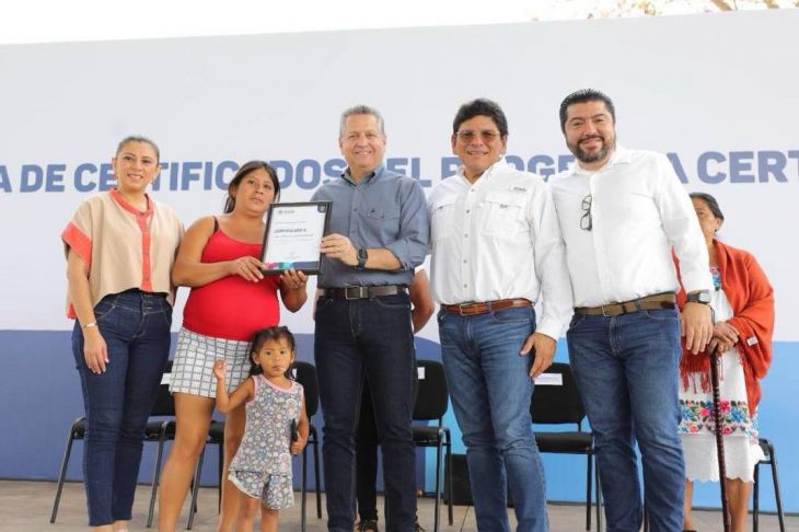 En la unidad deportiva Villa Palmira, el titular de la Secretaría de Desarrollo Social (Sedesol), Roger Torres Peniche, distribuyó en representación del gobernador Mauricio Vila Dosal dichos certificados del esquema Certeza Patrimonial a las familias que viven en los establecimientos Luzela, Roble Privada II y Asentamiento 330, de la colonia Roble Agrícola, y Emiliano 458, ubicado en la Emiliano Zapata Sur, con lo que dan un importante primer paso para obtener legalmente su patrimonio.