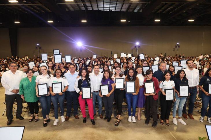 Durante el evento Mujeres yucatecas en STEM Ciencia, Tecnología, Ingeniería y Matemáticas, el mandatario reconoció el esfuerzo de alumnas de universidades públicas de los municipios de de Izamal, Maxcanú, Motul, Oxkutzcab, Peto, Progreso, Tekax, Ucú, Valladolid y Mérida, quienes obtuvieron promedios destacados en el actual ciclo escolar.