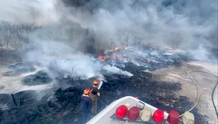 La SSP informó que los bomberos se encuentran en el kilómetro 9 de la carretera Mérida-Valladolid combatiendo el fuego causado por un incendio de llantas y maleza.