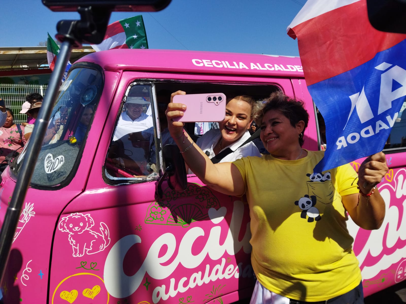 Cecilia avanzó a bordo de La Chula por las calles de San Antonio Xluch III, saludando a los simpatizantes, quienes se acercaban a tomarse fotografías.