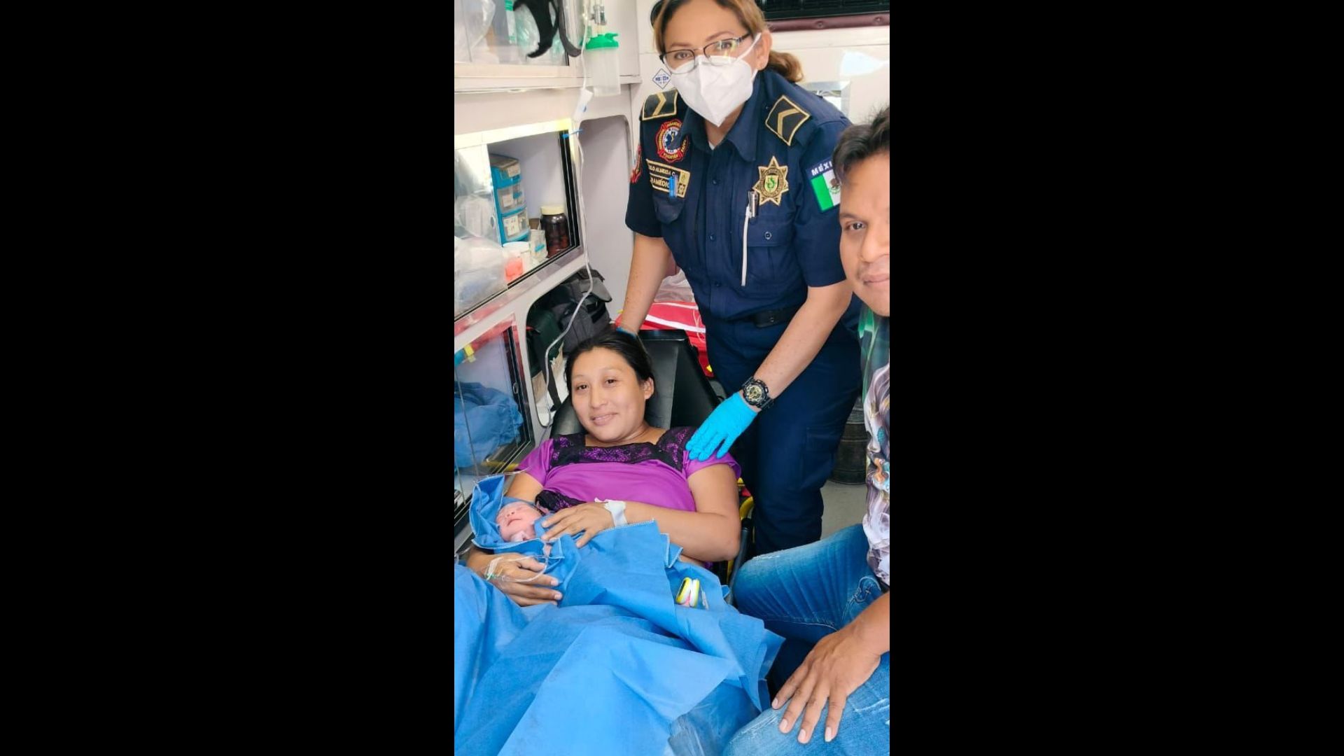Ante el inminente alumbramiento la ambulancia se estacionó y los paramédicos Manuel Sánchez May y Cielo Almeida Canul atendieron el parto.