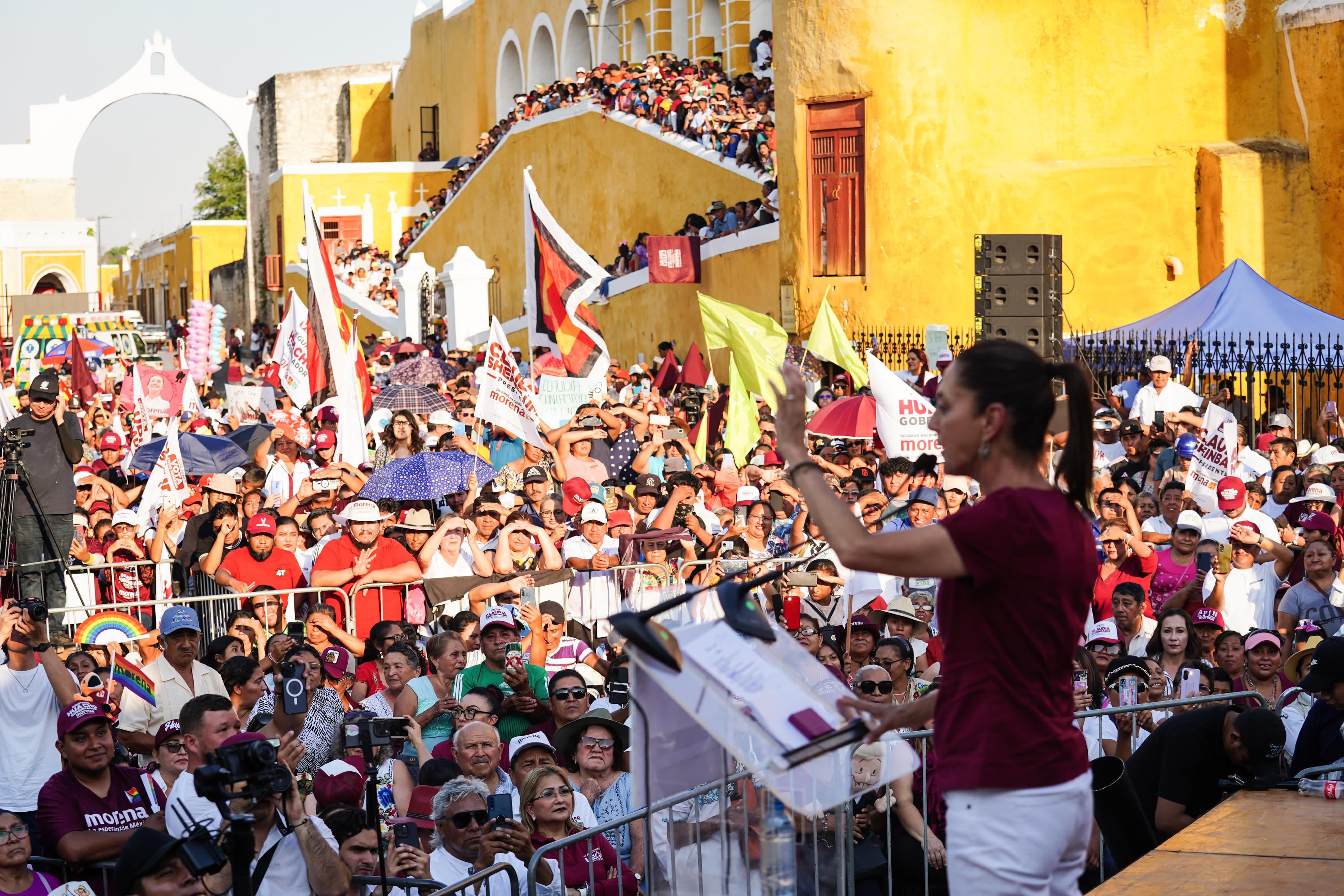 La candidata presidencial Claudia Sheinbaum Pardo anunció en Izamal su intención de promover una reforma para que los pueblos originarios y afroamexicanos sean reconocidos en la constitución como sujetos de derecho.