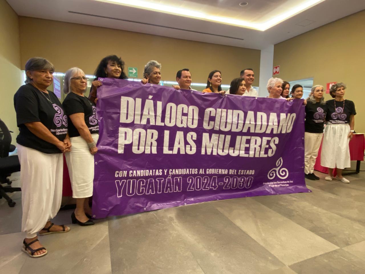 Renán Barrera Concha, candidato del PAN, PRI y Nueva Alianza; Joaquín Huacho Díaz Mena, de Morena, PT y PVEM; Vida Gómez Herrera, abanderada de Movimiento Ciudadano; y Jazmín López Manrique Tina Tuyub del PRD escucharon la agenda feminista 2024-2030 que propone el Frente por los Derechos de las Mujeres y que busca la atención inmediata a las problemáticas que se viven en Yucatán.