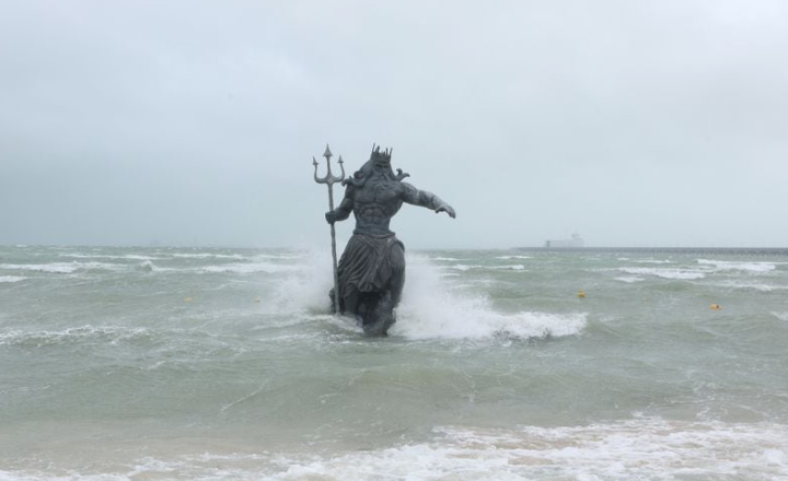 La estatua de Poseidón fue colocada por el ayuntamiento frente al Malecón Internacional de Progreso, de la colonia Centro, en dicho municipio costero.