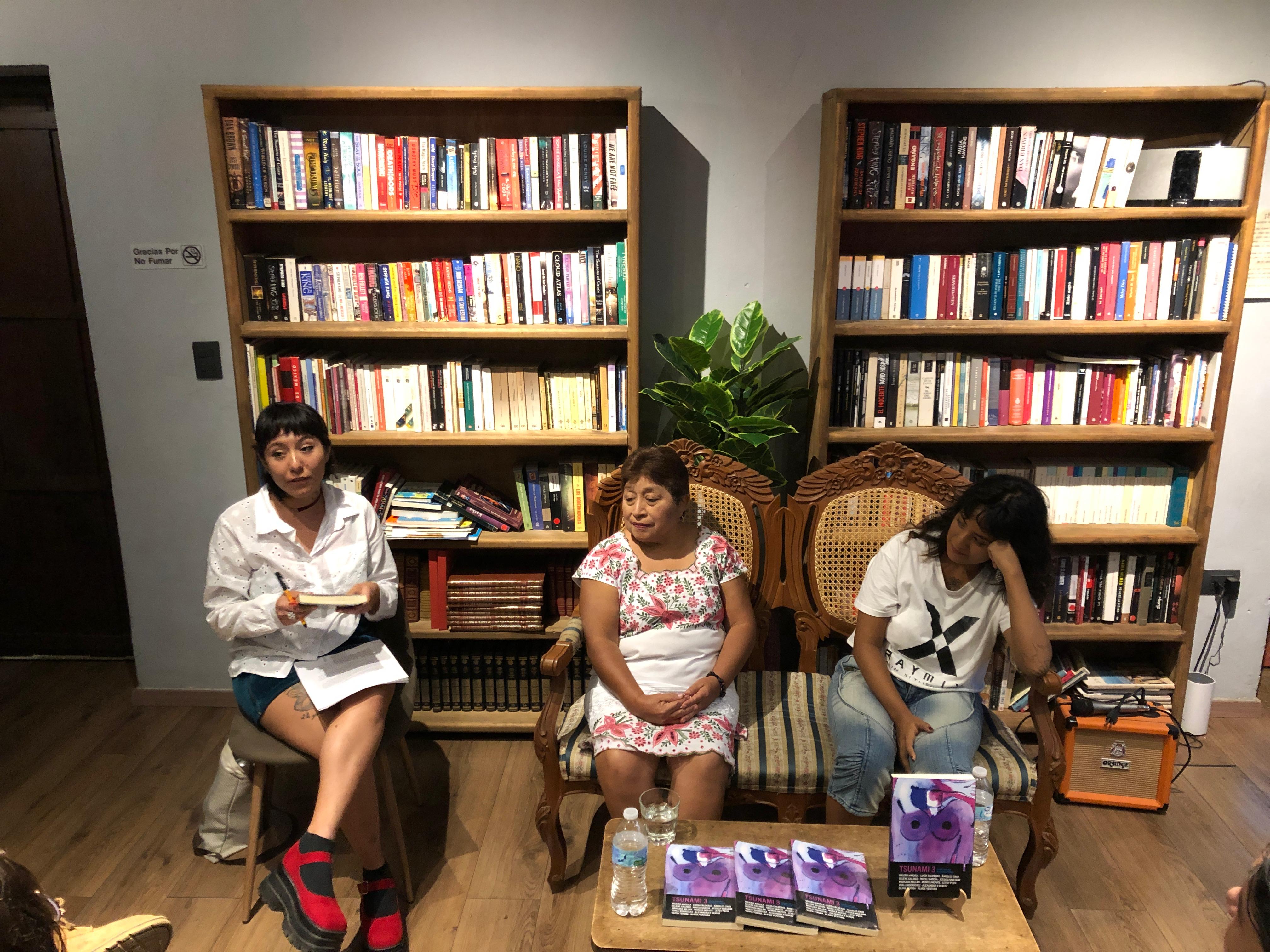 Las olas del tsunami llegaron hasta la librería Sempere, en el centro de Mérida, e inundaron de espíritu combativo a todas las personas que asistieron a escuchar los testimonios de Leydy Pech y Lucía Calderas, activistas que participan en la tercera edición de la antología.