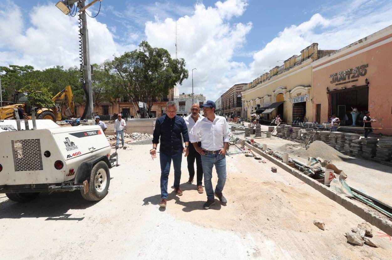 Junto al alcalde de Mérida, Alejandro Ruz Castro, y el director general del Instituto para la Construcción y Conservación de Obra Pública en Yucatán (INCCOPY), Virgilio Crespo Méndez, el gobernador verificó que se están adecuando las vialidades que rodean a la Plaza Grande, donde se establecerá un solo nivel para el área peatonal y el área vehicular, a fin de facilitar el desplazamiento y dar prioridad al peatón y se aplicarán restricciones para reducir el flujo de vehículos automotores.