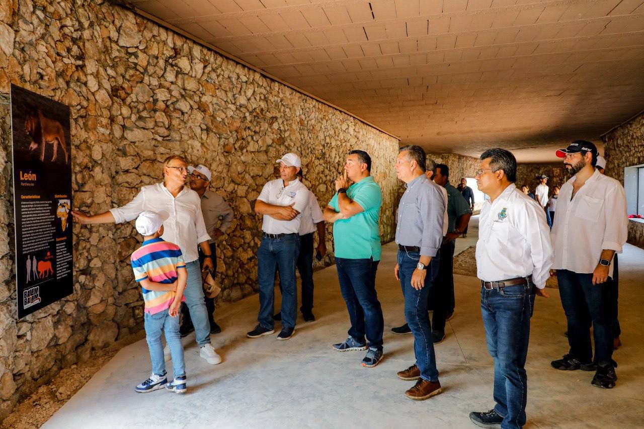 Acompañado de Renán Barrera Concha, alcalde con licencia y principal impulsor de la construcción del felinario, el presidente municipal realizó una visita de supervisión en este sitio para verificar los avances de la obra que tiene una superficie de 16 mil 800 metros cuadrados y una inversión de 58 millones 549 mil 583.53 pesos.