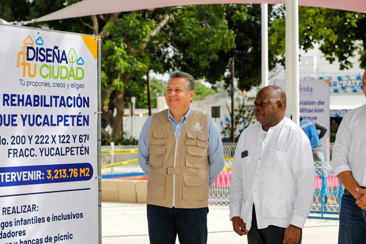 Acompañado por el presbítero Egibe Misasi Mubiala, de la Parroquia San Martín Caballero, y de vecinos de la colonia, Ruz Castro recorrió las zonas en rehabilitación del proyecto Nuestro parque Yucalpetén, que resultó seleccionado mediante la gran consulta ciudadana Diseña tu ciudad.