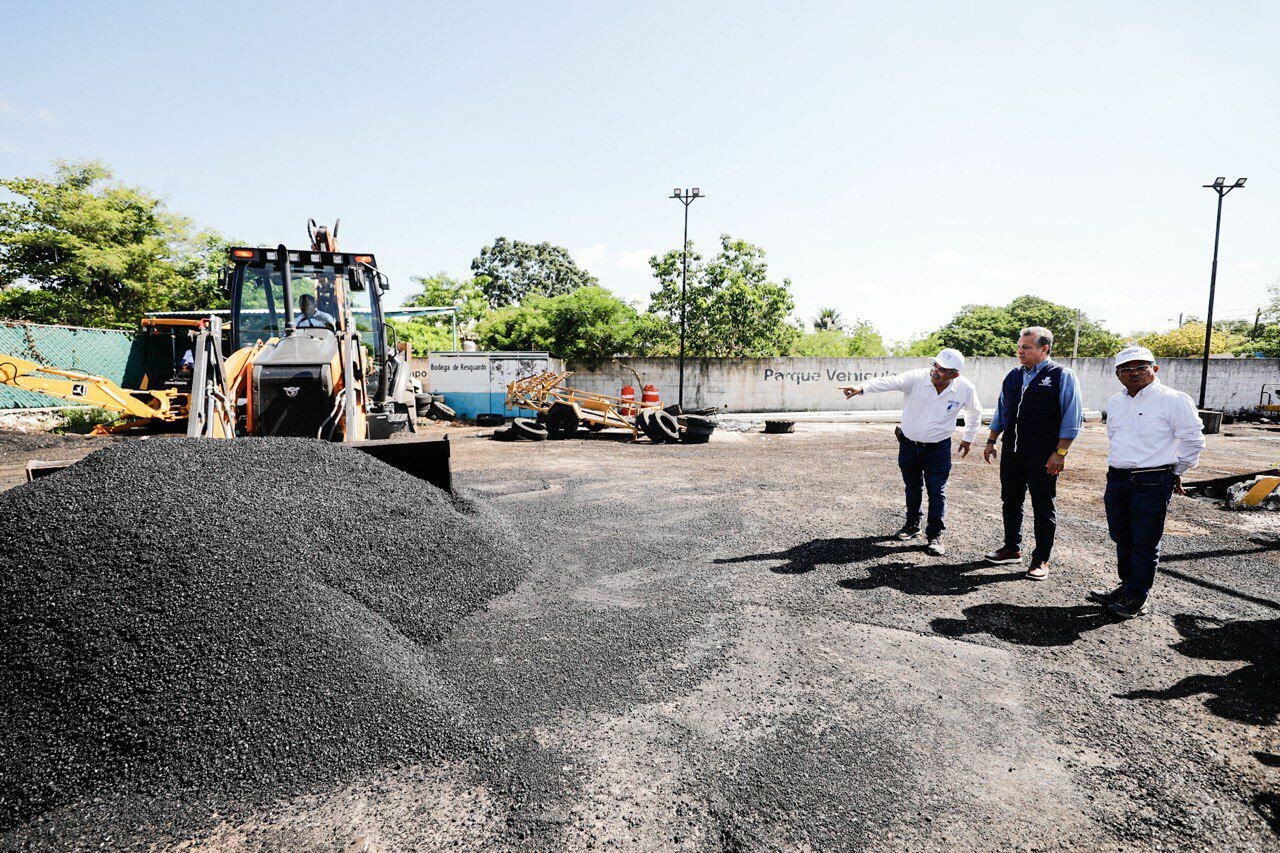Luego de un recorrido por las instalaciones de la base oriente de la Subdirección de Vías Terrestres en San Antonio Kaua II, donde saludó a los operadores de los volquetes y al personal operativo de Obras Públicas, el alcalde dio el banderazo al inicio oficial del programa de Bacheo Emergente.