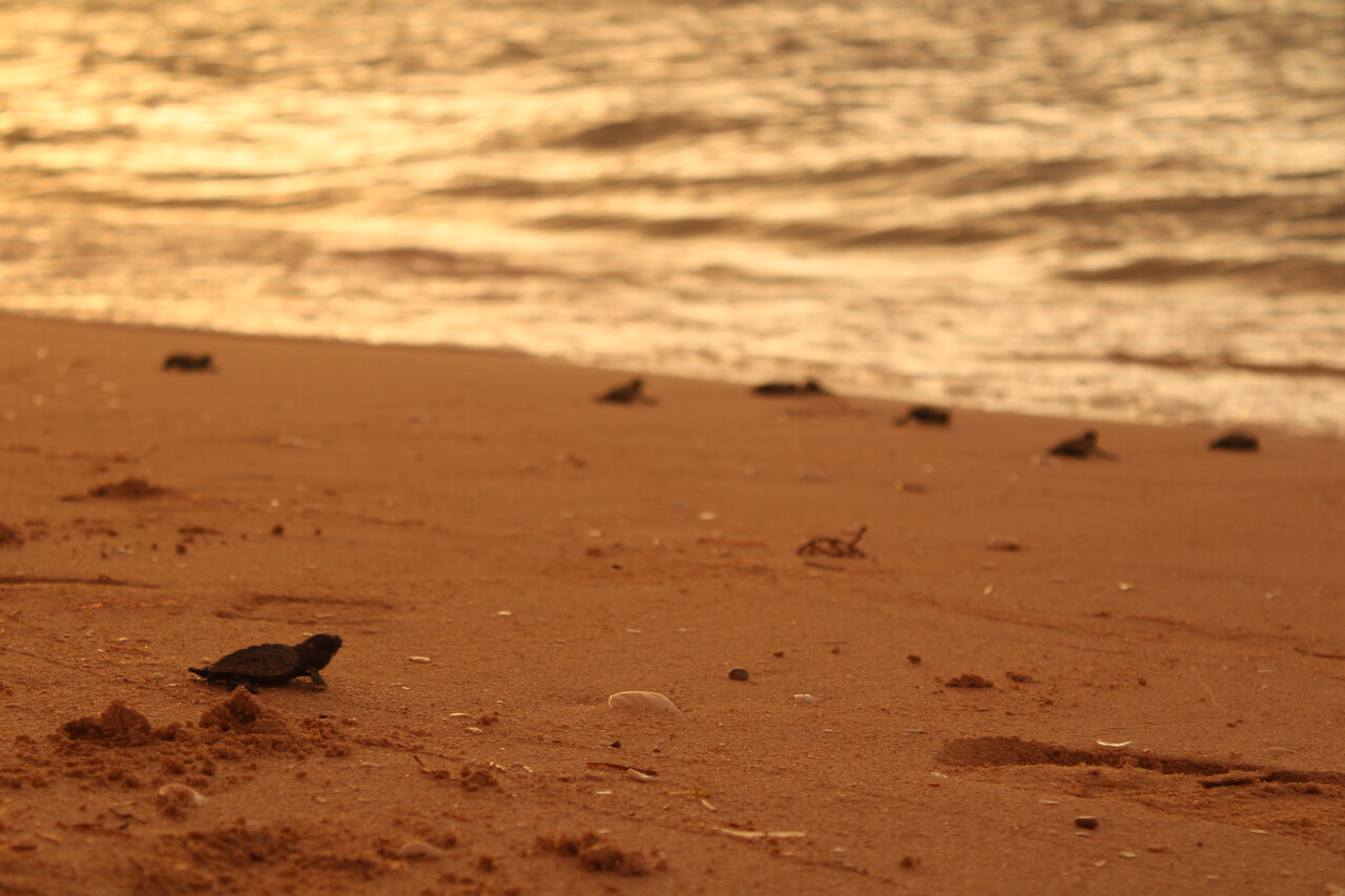 Con el atardecer de fondo y mediante el cuidado de la Secretaría de Desarrollo Sustentable, se dio inicio a la temporada de liberación de tortugas marinas en la playa de Sisal, Yucatán, este viernes 9 de agosto.