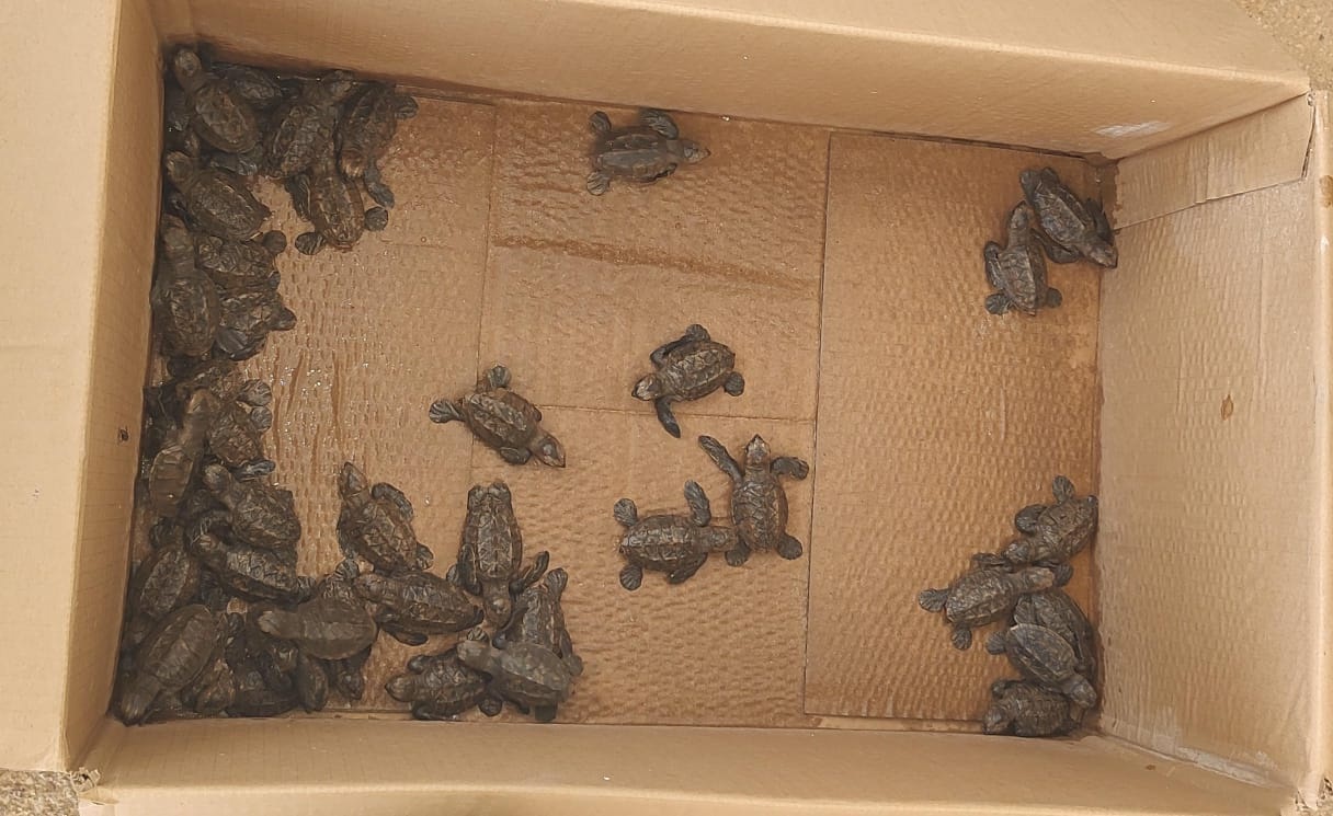 El velador de una propiedad en la entrada ABC en Progreso, Jaime Claudon Toh, entregó a la Policía Ecológica 48 tortugas neonatas. Los elementos resguardaron a los ejemplares y posteriormente los liberaron conforme a los protocolos.