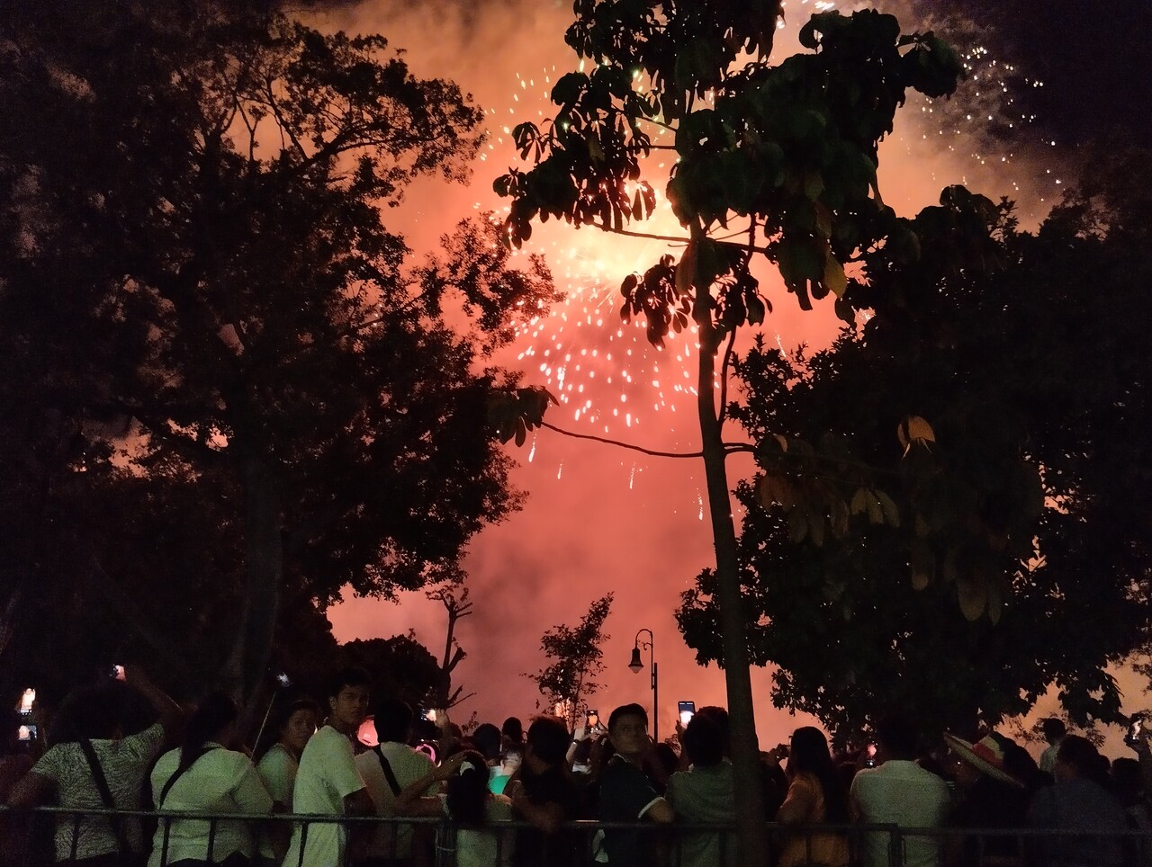 Tras el protocolo de la ceremonia cívica, el cielo estalló en colores patrios, verdes, blancos, rojos. Por varios minutos los fuegos artificiales iluminaron la mirada de los ahí reunidos hasta que sonó el batacazo de inicio de la banda sinaloense Calibre 50, que con sus canciones comenzó la fiesta musical, divirtiendo a los mexicanos con sus éxitos como Siempre te voy a querer, Amor del bueno y Contigo.