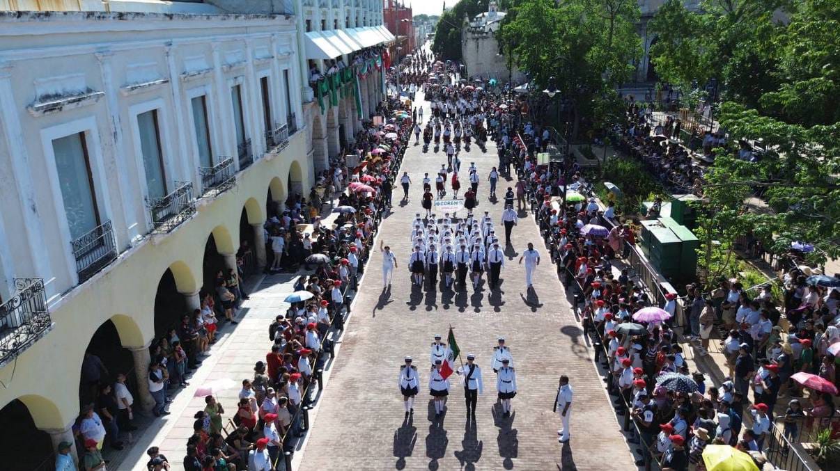 Yucatecas y yucatecos demostraron su fervor patrio y disfrutaron del desfile cívico-militar conmemorativo al 16 de septiembre, que encabezó la encargada del Despacho del Gobernador, María Fritz Sierra, en funciones del titular del Poder Ejecutivo y contó con la participación de miles de estudiantes, elementos de los cuerpos de seguridad y de las Fuerzas Armadas.