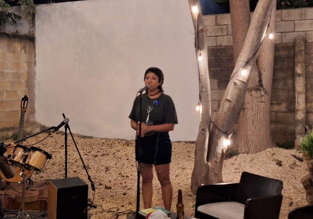 El evento comenzó con Katia al micrófono compartiendo un fragmento de su obra, uno en el que destacó su sentir hacia Yucatán, recordando que Yucatán no es sólo Mérida y hablando sobre la resistencia y sobre su experiencia de conocer la perspectiva de otras personas en otros municipios.