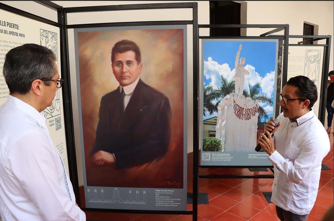 Desde este jueves y hasta el 14 de octubre estará disponible la exposición Felipe Carrillo Puerto, imagen y memoria del apóstol maya, en los pasillos del Centro Cultural Universitario de la Universidad Autónoma de Yucatán (UADY), organizada por la Secretaría de Cultura y las Artes del Estado (Sedeculya) y el Sistema Bibliotecario de esta casa de estudios.