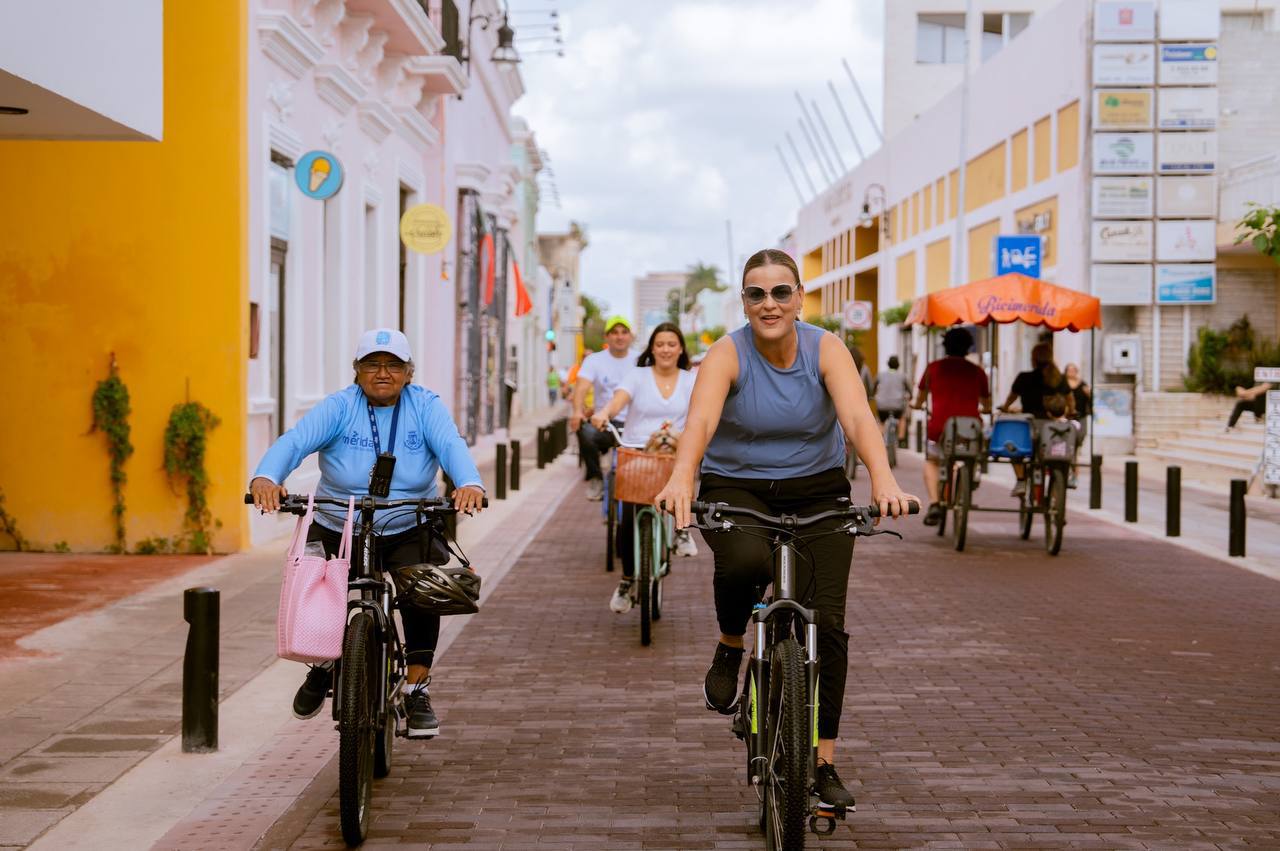 La alcaldesa realizó el recorrido en bicicleta desde el Monumento a la Patria hasta la Plaza Grande saludando a meridanos y turistas para escuchar sugerencias de mejora para la ciudad.