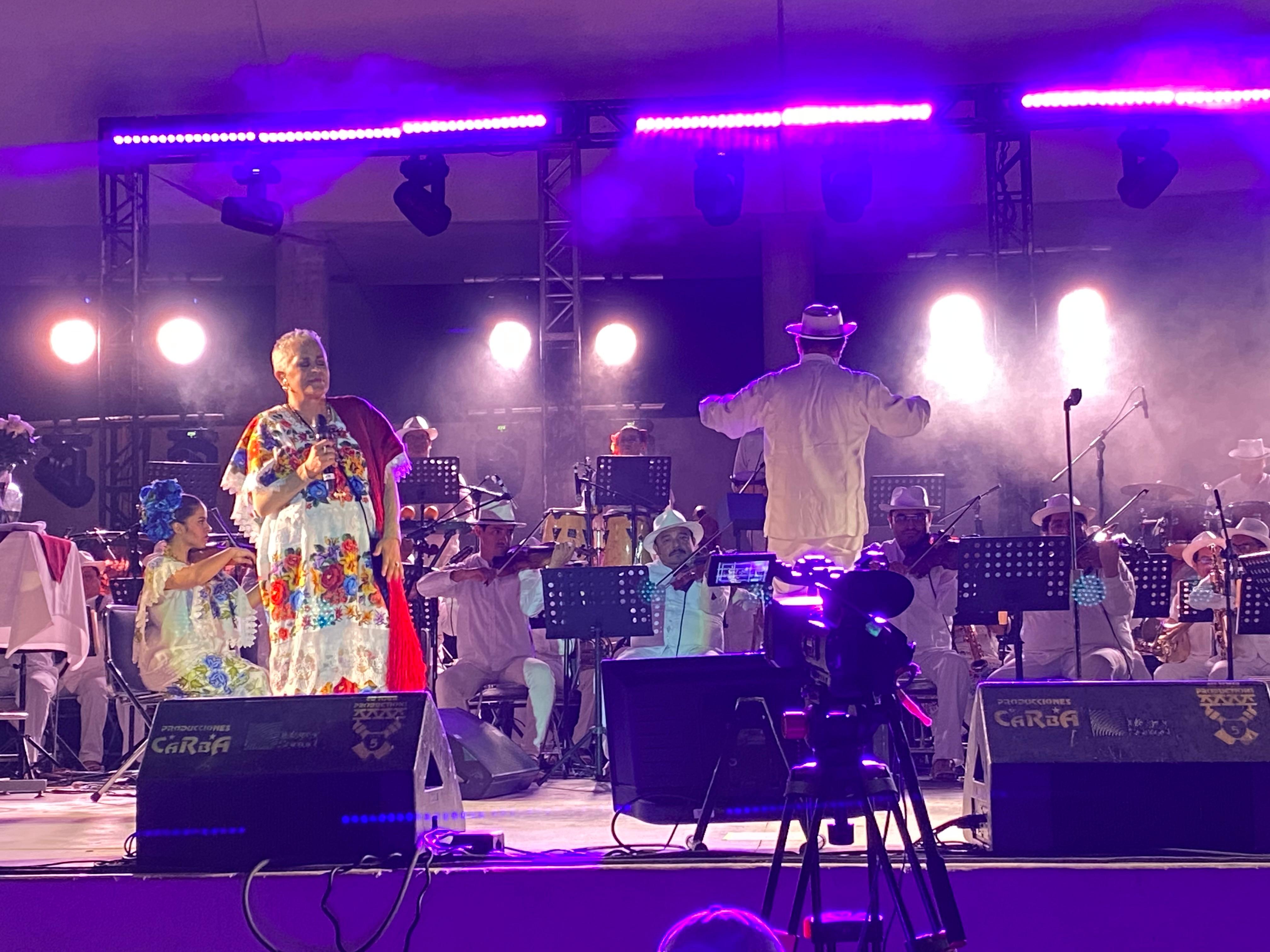 Al ritmo del son, el fandango, la cumbia, la tracalada norteña y el bolero, la cantante de voz prístina, acariciante, con la firmeza del do de pecho de mezzosoprano, contagió al público de alegría y musicalidad con temas de su vasto repertorio, incluidos los de la trova yucateca grabados en su acervo de 30 discos de larga duración.