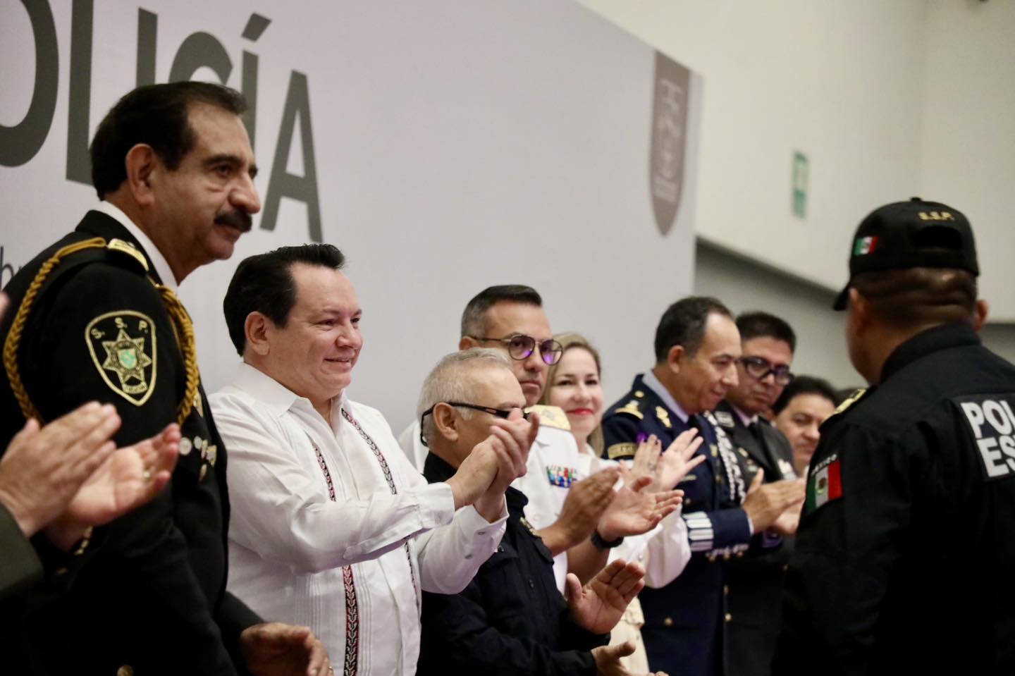 Acompañado del titular de la Secretaría de Seguridad Pública (SSP), Luis Felipe Saidén Ojeda, el gobernador entregó reconocimientos al Mérito Policial a 757 elementos, así como a 597 operativos y administrativos que cumplieron de 10 a 45 años de servicio dentro de la dependencia.