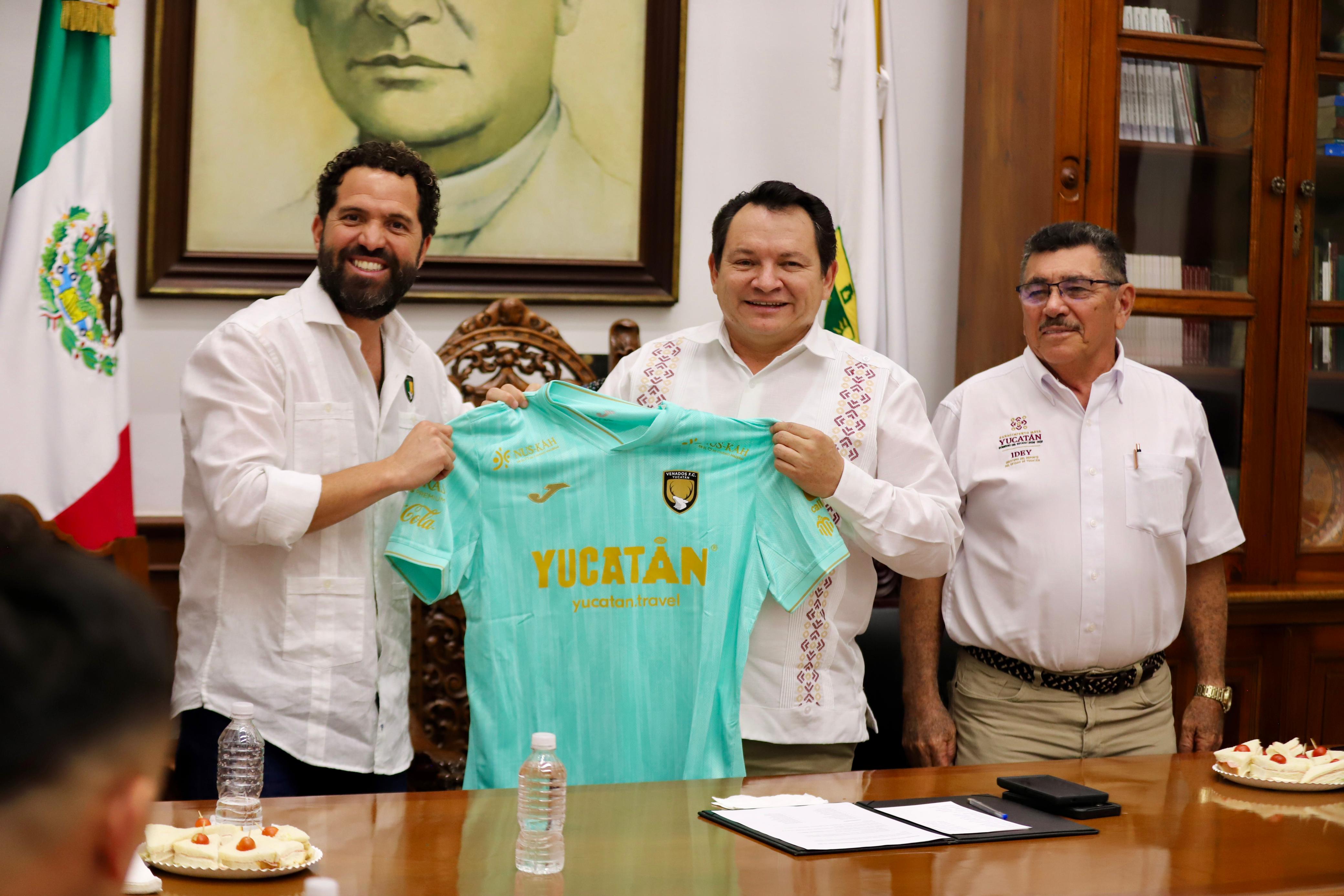 El plantel de jugadores, cuerpo técnico y staff de Venados Futbol Club visitaron este miércoles el Palacio de Gobierno de Yucatán, donde junto al jefe del Ejecutivo estatal plasmaron la foto oficial de cara a la temporada Clausura 2025.