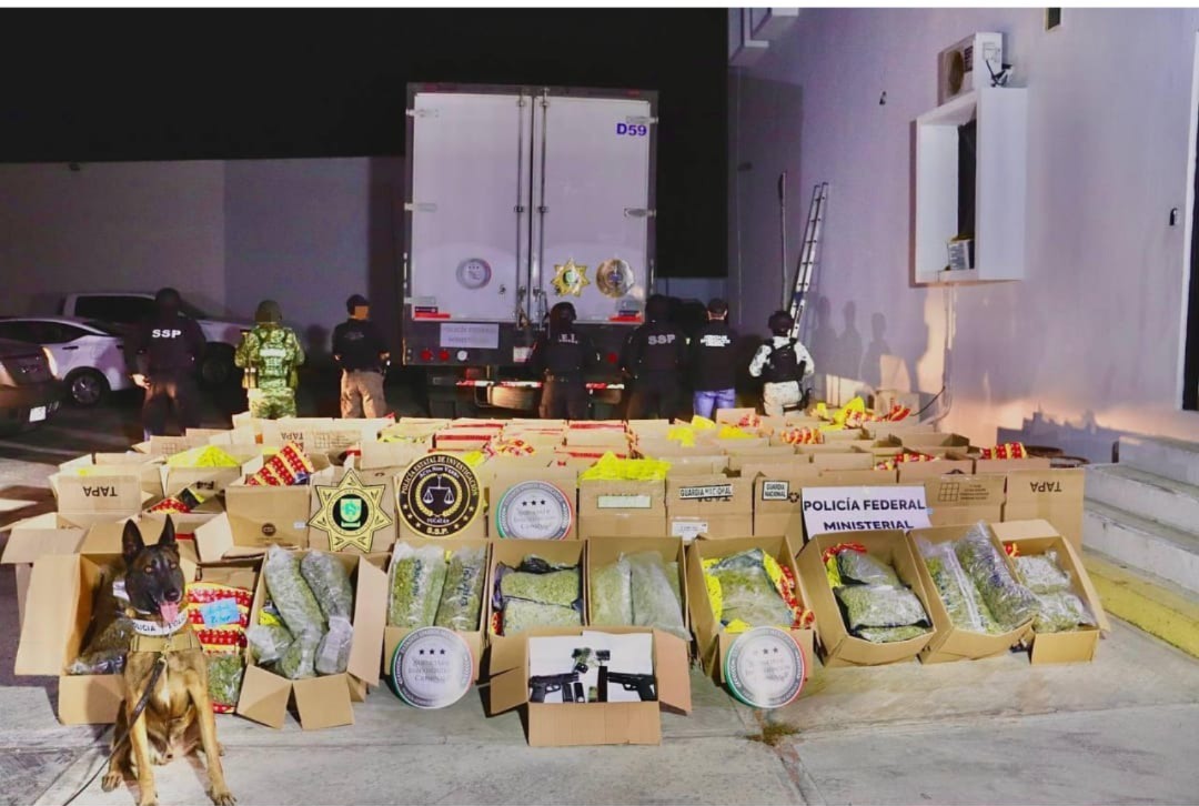 Más de 800 kilogramos de cannabis (mariguana) fueron asegurados la noche del miércoles en la carretera Campeche-Mérida por elementos de fuerzas estatales y federales. La droga, contenida en más de 100 cajas de cartón era transportada en un camión tipo Tortón.