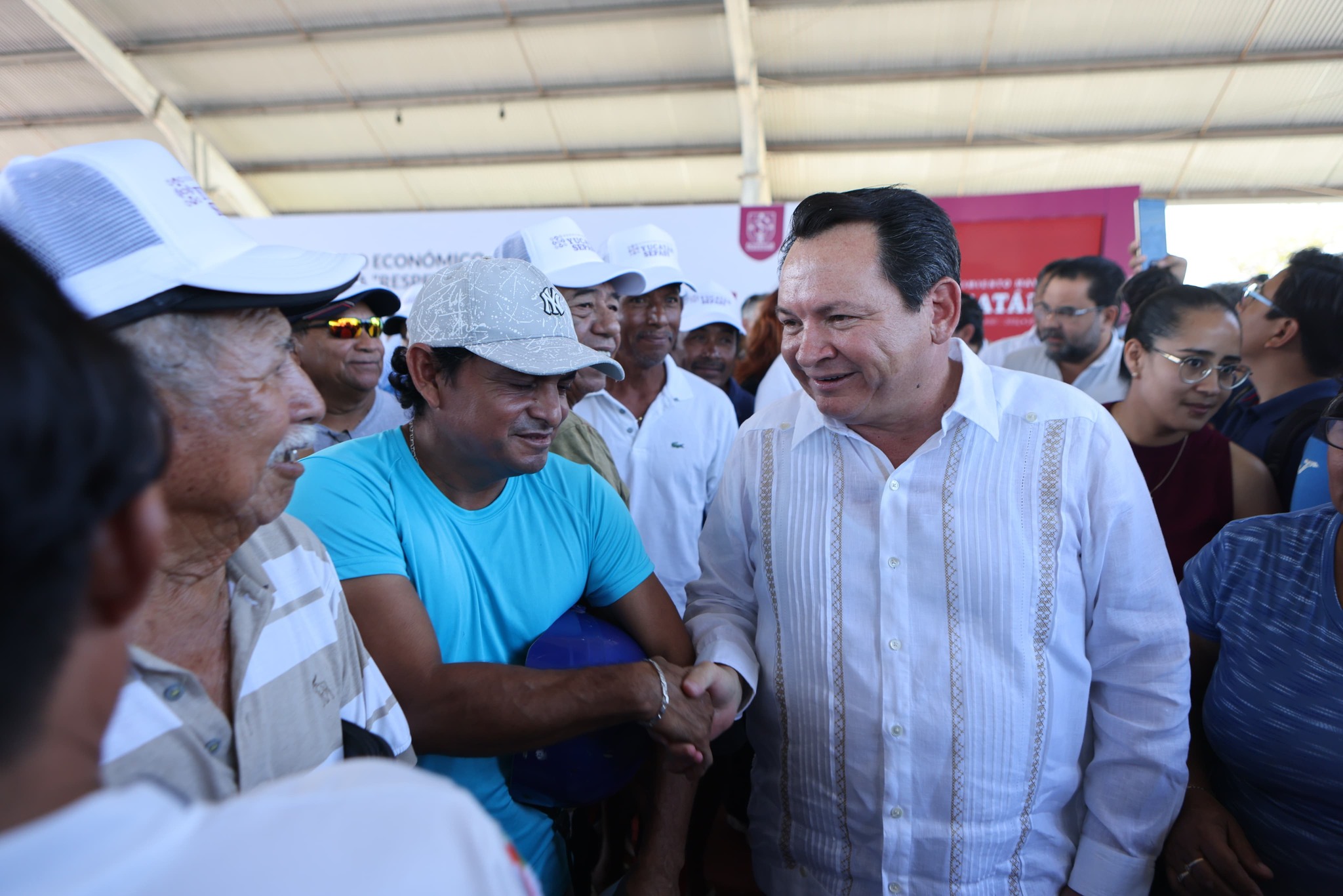 En presencia del alcalde de Progreso, Erik Rihani González, Díaz Mena indicó que, por primera vez, se ha creado un programa de apoyo especial para fileteras y deshuesadoras de mero, quienes desempeñan un papel esencial en la cadena productiva de los puertos.