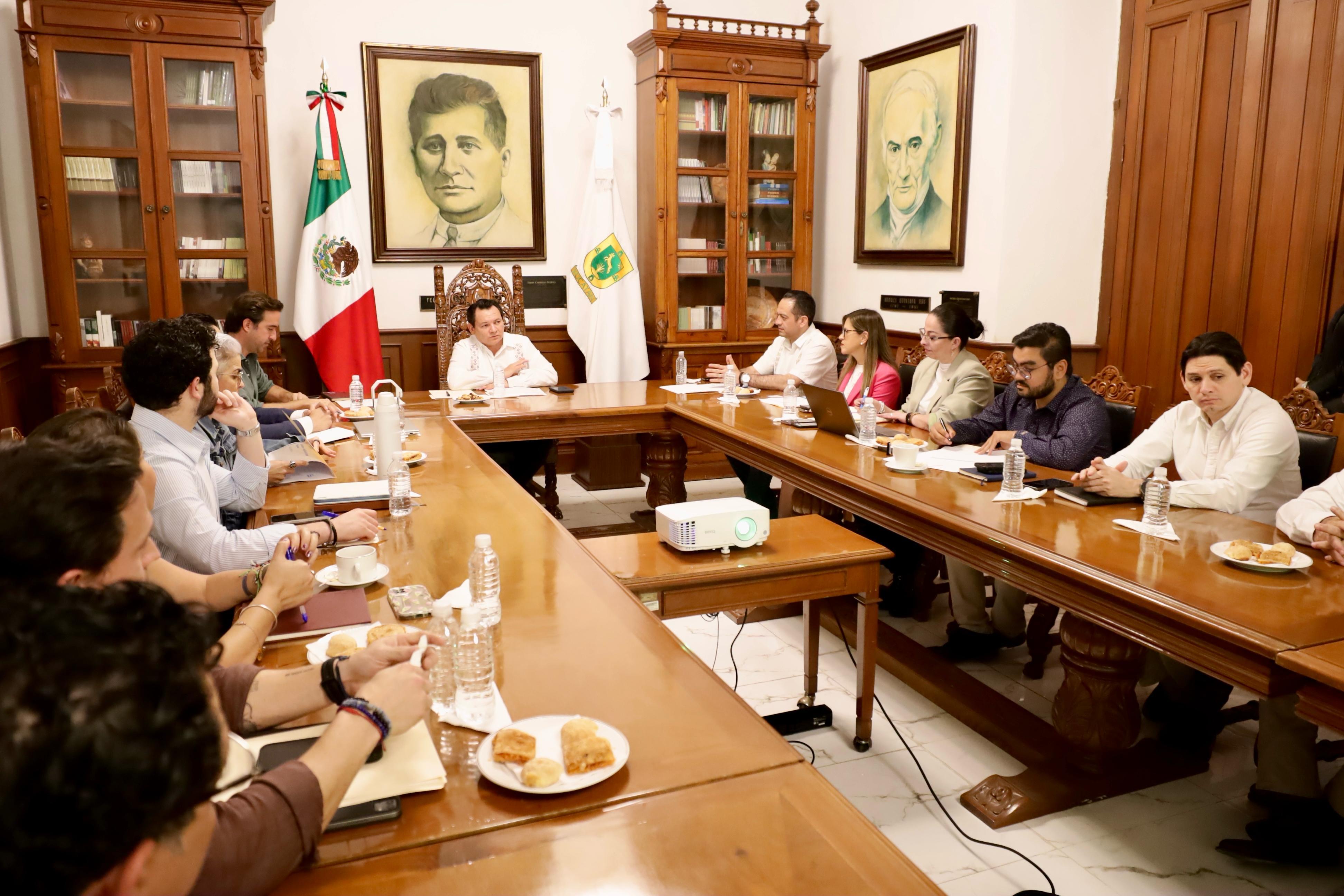 En el encuentro estuvieron los titulares de las Secretarías General de Gobierno, Omar Pérez Avilés; de Economía y Trabajo de Yucatán (SETY), Ermilo Barrera Novelo; de Desarrollo Sustentable, Janine Quijano Tapia; y el director general de la Agencia de Energía de Yucatán (AEY), Pablo Gamboa Miner y el presidente de la Junta de Gobierno y Coordinación Política del Congreso del Estado, Wilmer Manuel Monforte Marfil.