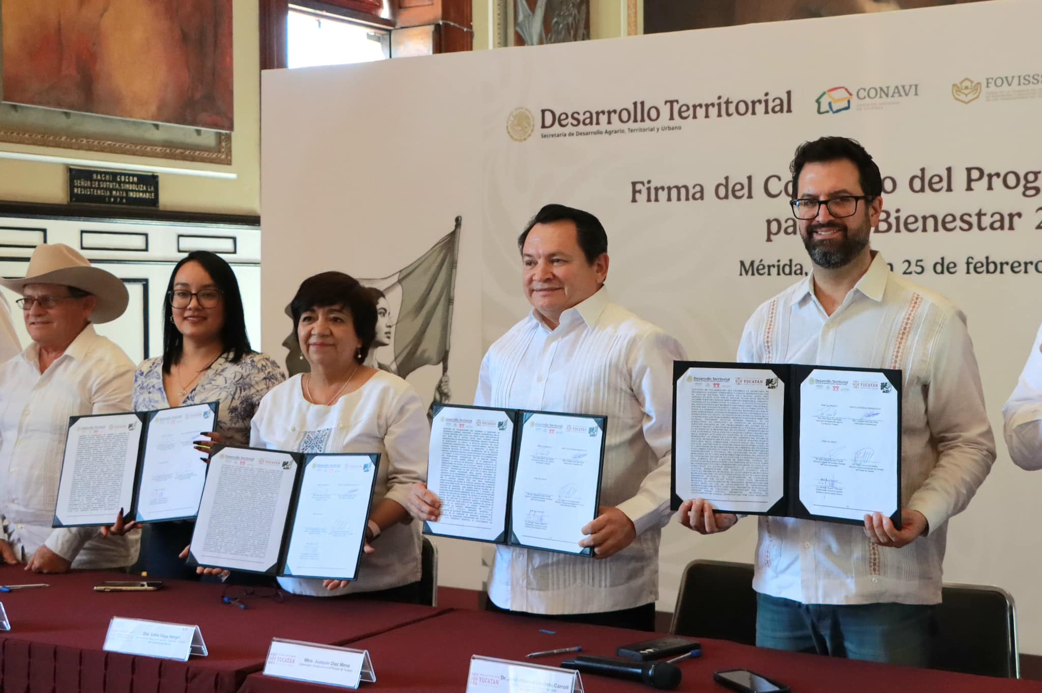 El gobierno de Yucatán firmó un convenio para realizar el programa Vivienda para el Bienestar 2025, celebrado entre el gobernador Joaquín Díaz Mena y la titular de la Secretaría de Desarrollo Agrario, Territorial y Urbano del Gobierno de México (Sedatu), Edna Vega Rangel. El objetivo es dar el primer paso para la edificación de 20 mil viviendas en la entidad.
