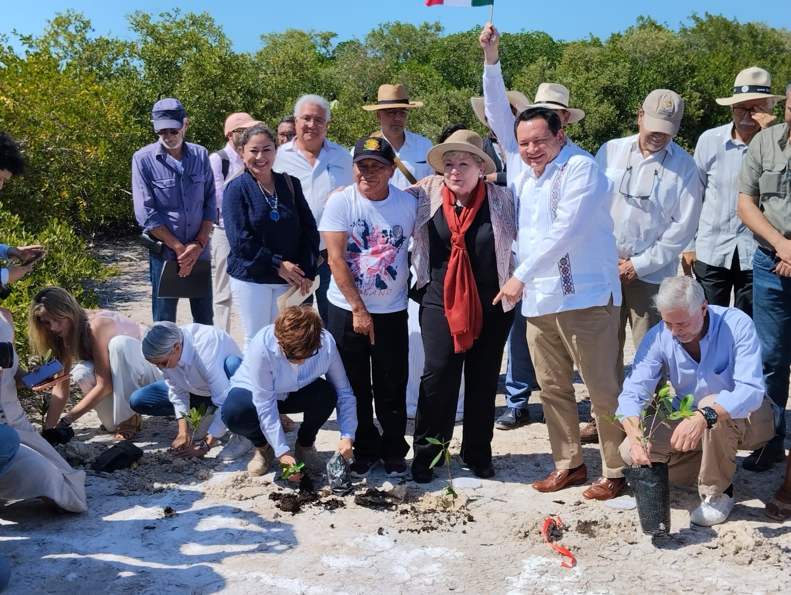 En el banderazo de inicio de la siembra del mangle estuvieron presentes la titular de Secretaría de Desarrollo Sustentable, Federica Quijano; la titular de Procuraduría Federal de Protección al Medio Ambiente (Profepa), Mariana Boy, así como el grupo de pescadores del C 5 quienes están implicados en estos trabajos.