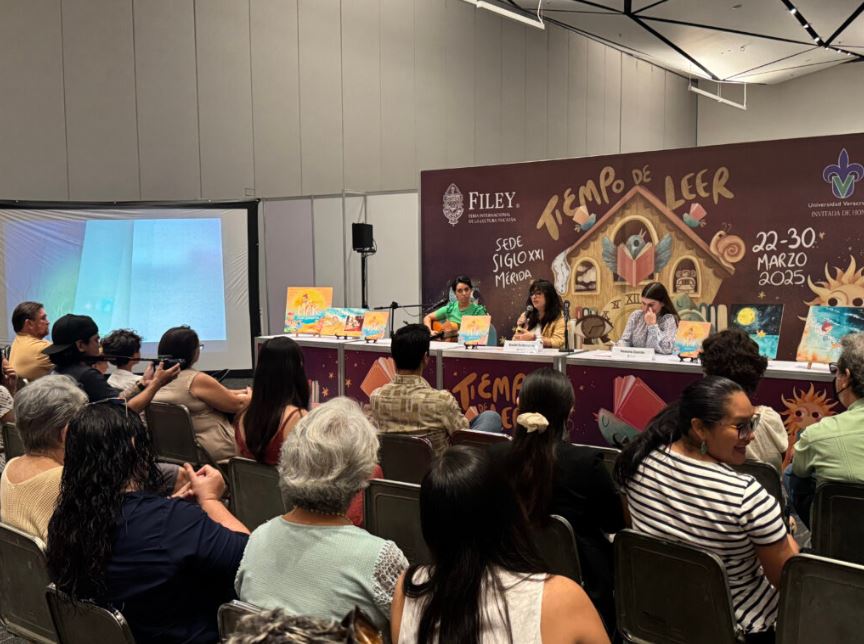 Como parte del último día de actividades de la Feria Internacional de la Lectura Yucatán (FILEY) 2025, la ilustradora y escritora Anahí Echeverría compartió con el público la lectura de su libro infantil El Mar.