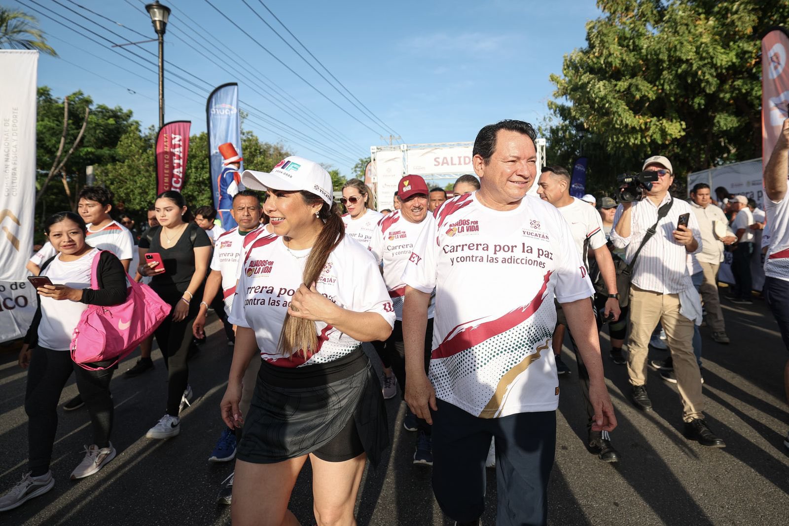 Yucatán se sumó a la Carrera por la Paz y contra las Adicciones que impulsa la presidenta Claudia Sheinbaum Pardo para fomentar la actividad física y concienciar a la población sobre la importancia de alejarse de las adicciones y que se realizó de manera simultánea en las 32 entidades.