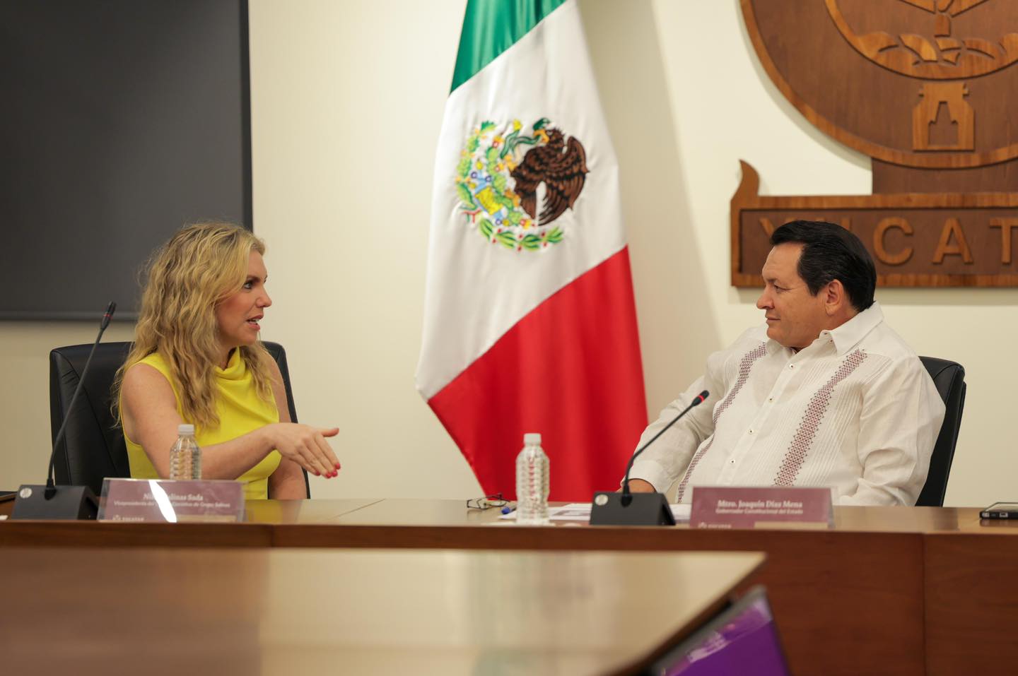 El gobernador Joaquín Díaz Mena sostuvo un encuentro con Ninfa Salinas Sada, presidenta del Consejo de Fundación Azteca de Grupo Salinas, para fortalecer la colaboración en materia educativa y de emprendimiento. Durante la reunión, se analizaron estrategias para ampliar las oportunidades de desarrollo de las y los yucatecos a través de proyectos conjuntos.