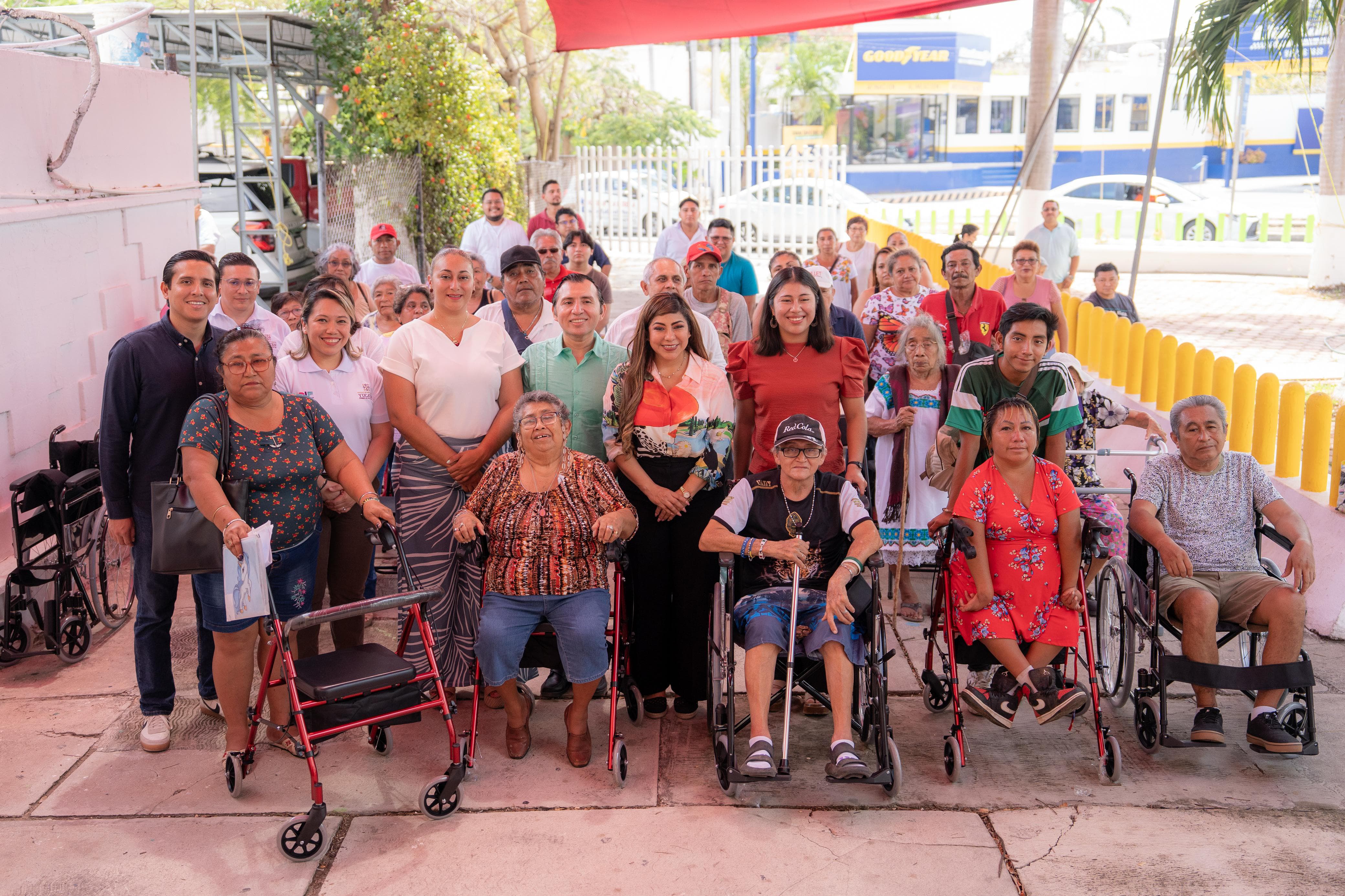 La Presidenta Honoraria del DIF Yucatán, Wendy Yamile Méndez Naal, encabezó el evento donde se entregó 19 sillas de ruedas, 10 andadores rollator, cinco bastones de cuatro puntos y una andadera, que mejorarán la movilidad y la calidad de vida de las y los beneficiarios.