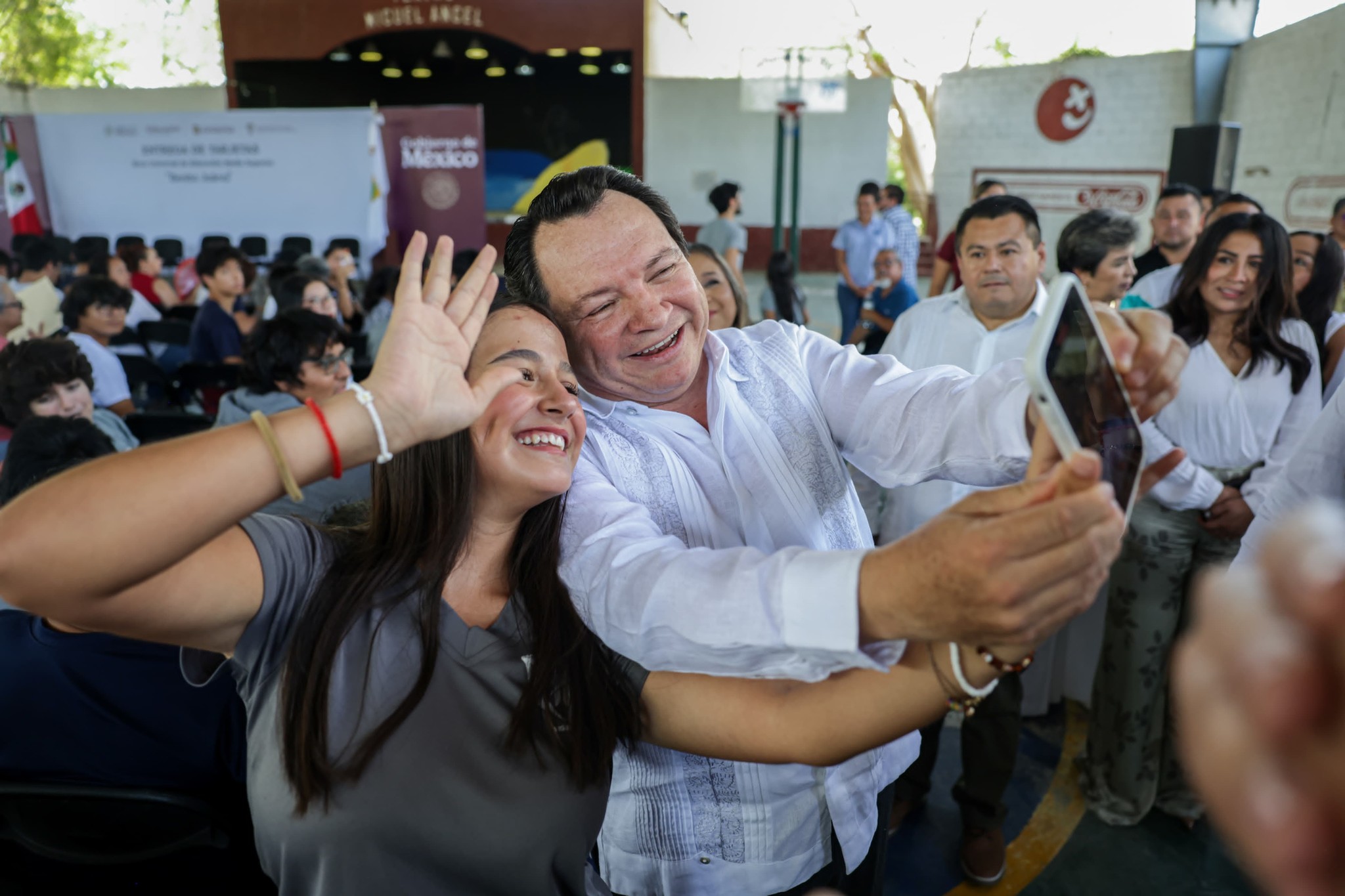 Al dirigir su mensaje, el gobernador agradeció el respaldo de la presidenta de México, Claudia Sheinbaum Pardo, quien está apoyando a los yucatecos con proyectos educativos como cinco universidades nuevas, de las cuales este año arrancan dos: la del Mar en Progreso y la Rosario Castellanos en Kanasín.