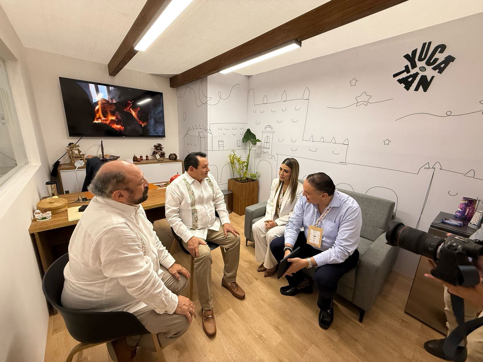 En el marco del Tianguis Turístico México, que se realizó recientemente en Baja California, Marcela Toriello, Presidenta y CEO de la aerolínea, se reunió con Joaquín Díaz Mena, gobernador del estado de Yucatán, y con Darío Flota, Secretario de Fomento Turístico de la entidad.