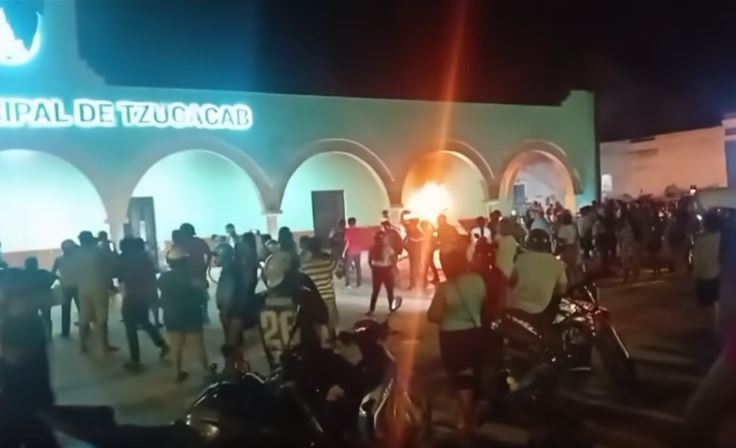 Una marcha para exigir justicia por la muerte del joven Ángel Alejandro, en la cárcel de Tzucacab, terminó de manera violenta la noche del jueves cuando una turba ingresó al Palacio Municipal, causó destrozos, saqueos y prendió fuego al mobiliario.
