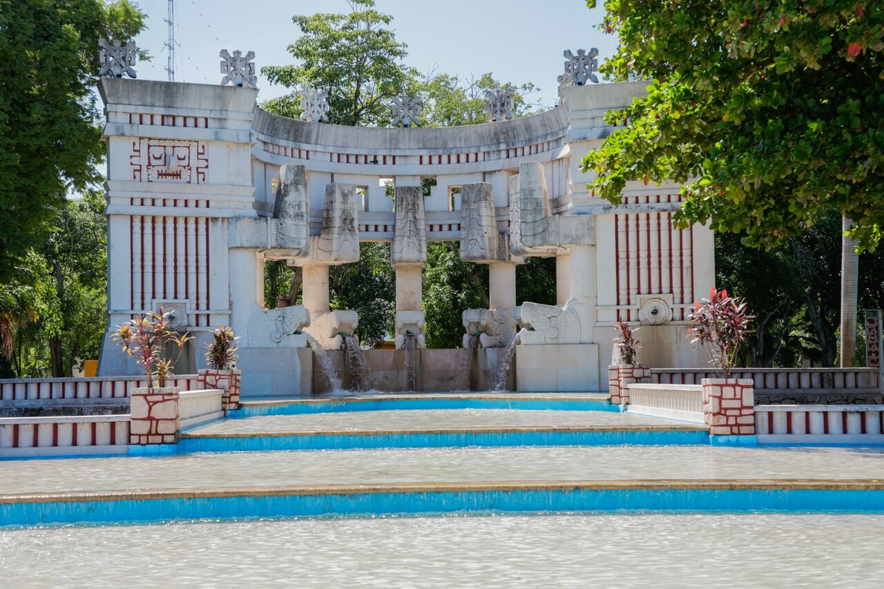 Acompañada de vecinos de la colonia García Ginerés, Patrón Laviada rindió un homenaje a la edificación de este emblemático parque en el que se hace referencia a la arquitectura monumental de la cultura maya y la identidad continental.